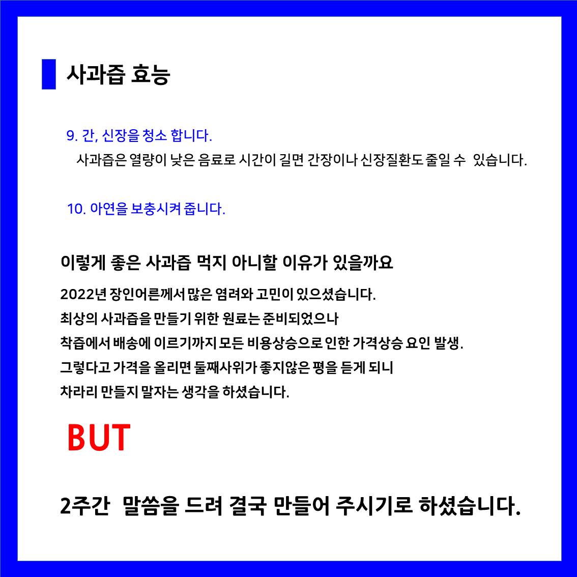 이렇게 어렵게 진행된 청송꿀사과로 만든 진짜 사과즙 판매를 위한 주문을